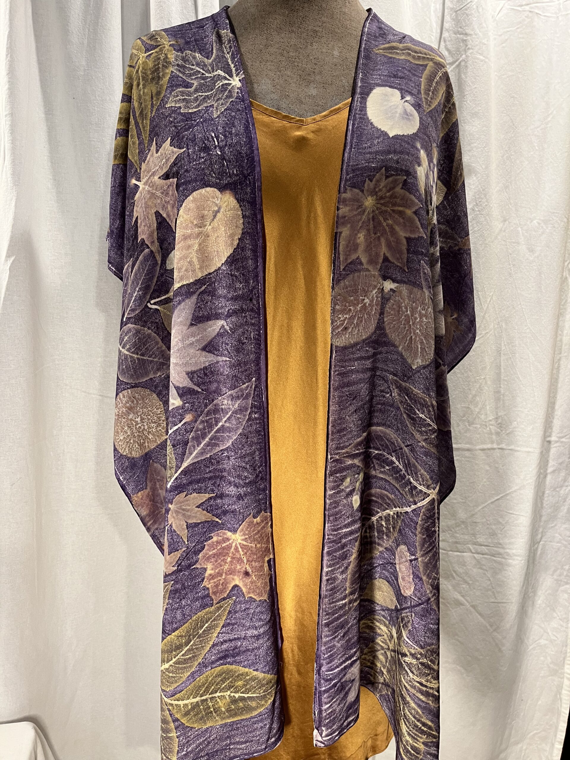 Long Purple Silk Crepe de Chine Ruana