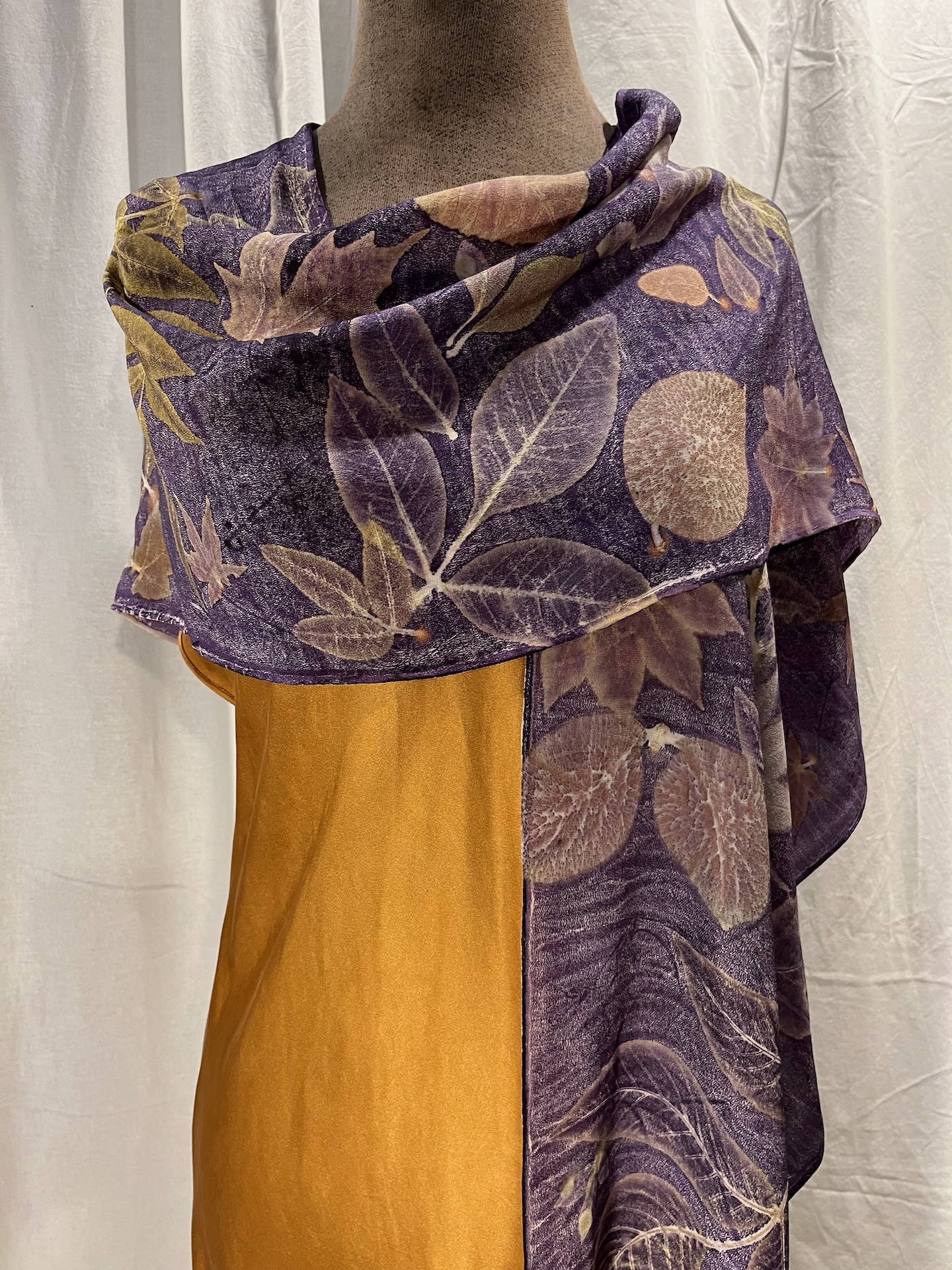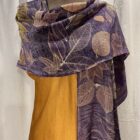 A Ruana is simply a way to wear a scarf- as clothing, without needing to wrap it around your neck. Worn over leggings or long skirt with a slinky tank or turtleneck underneath is the best way to show off your art-to-wear. You can dress it up or down, wear it belted or slung over one shoulder. This long Ruana is about 36” from shoulder to mid-thigh.