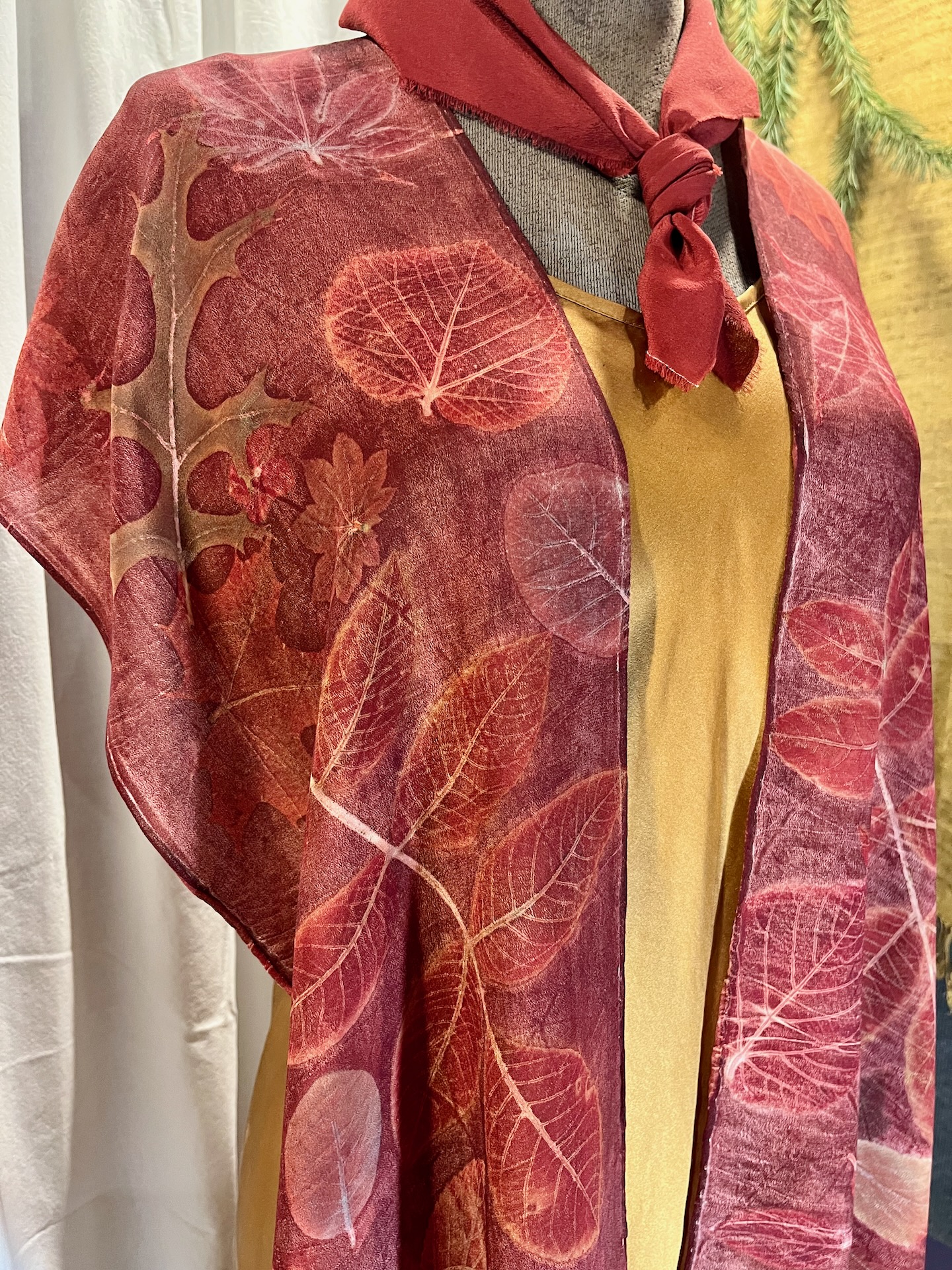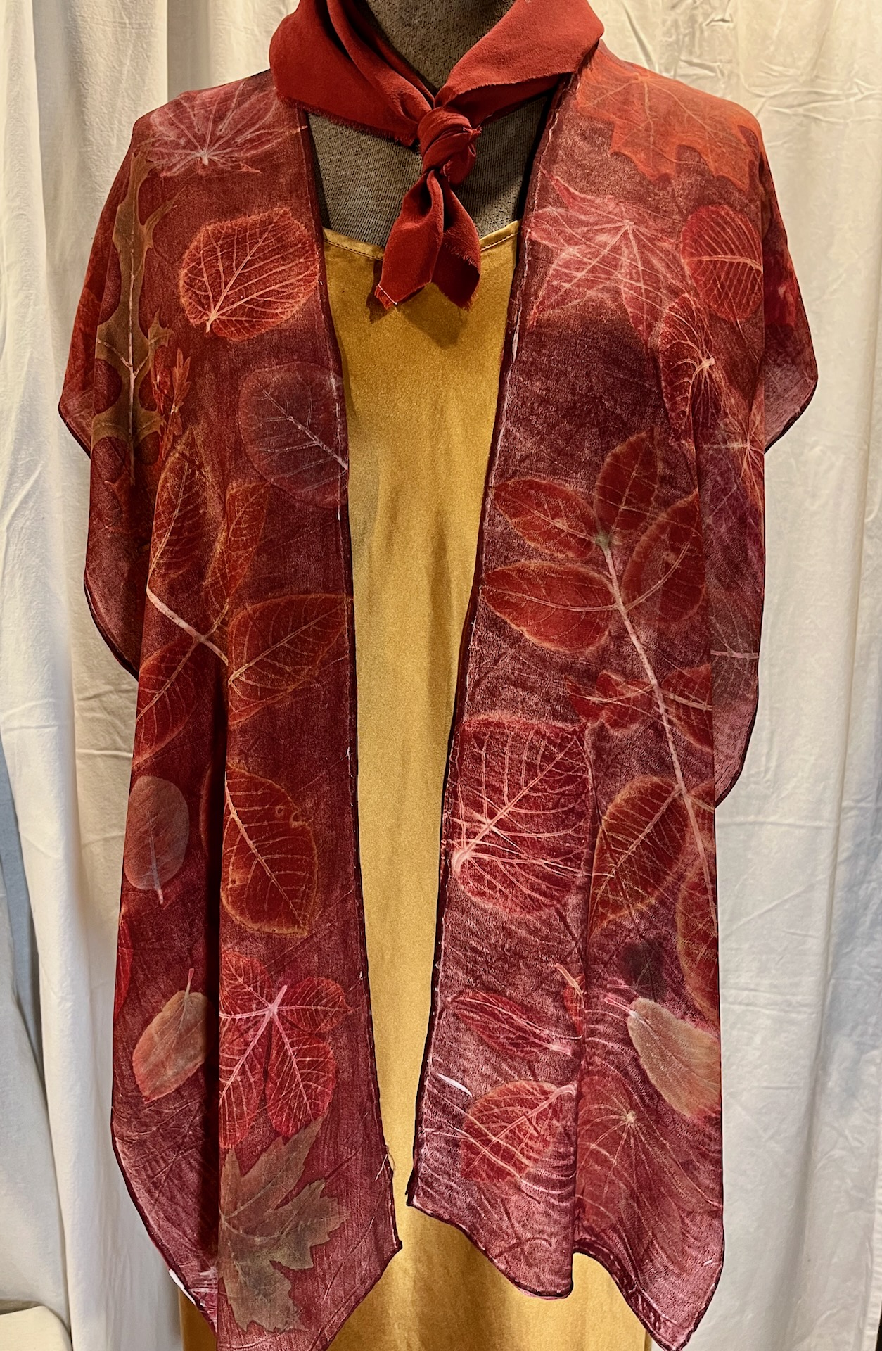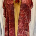 This is a very flowey, floaty silk crepe, perfect for layering over a solid tank or long sleeve and black leggings or a long skirt. It’s about 30’ from shoulder to thigh, and can be styled in a few different ways.